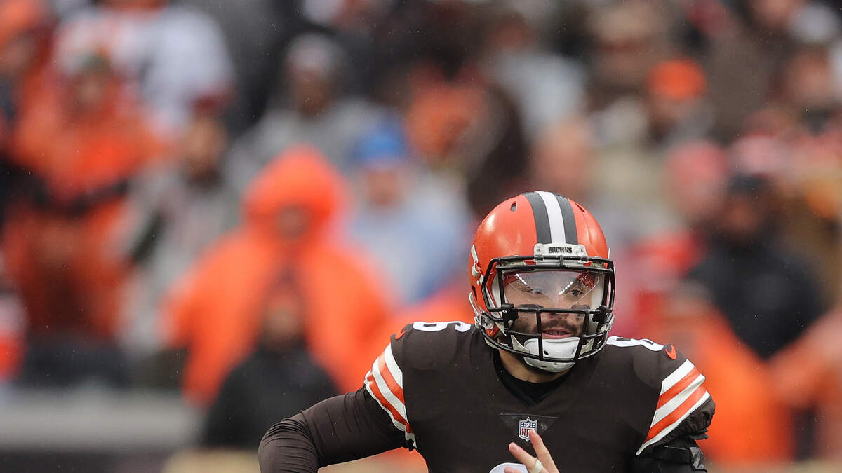 CLEVELAND, OHIO - NOVEMBER 21: Baker Mayfield #6 of the Cleveland Browns plays against the Detroit Lions at FirstEnergy Stadium on November 21, 2021 in Cleveland, Ohio. (Photo by Gregory Shamus/Getty Images)