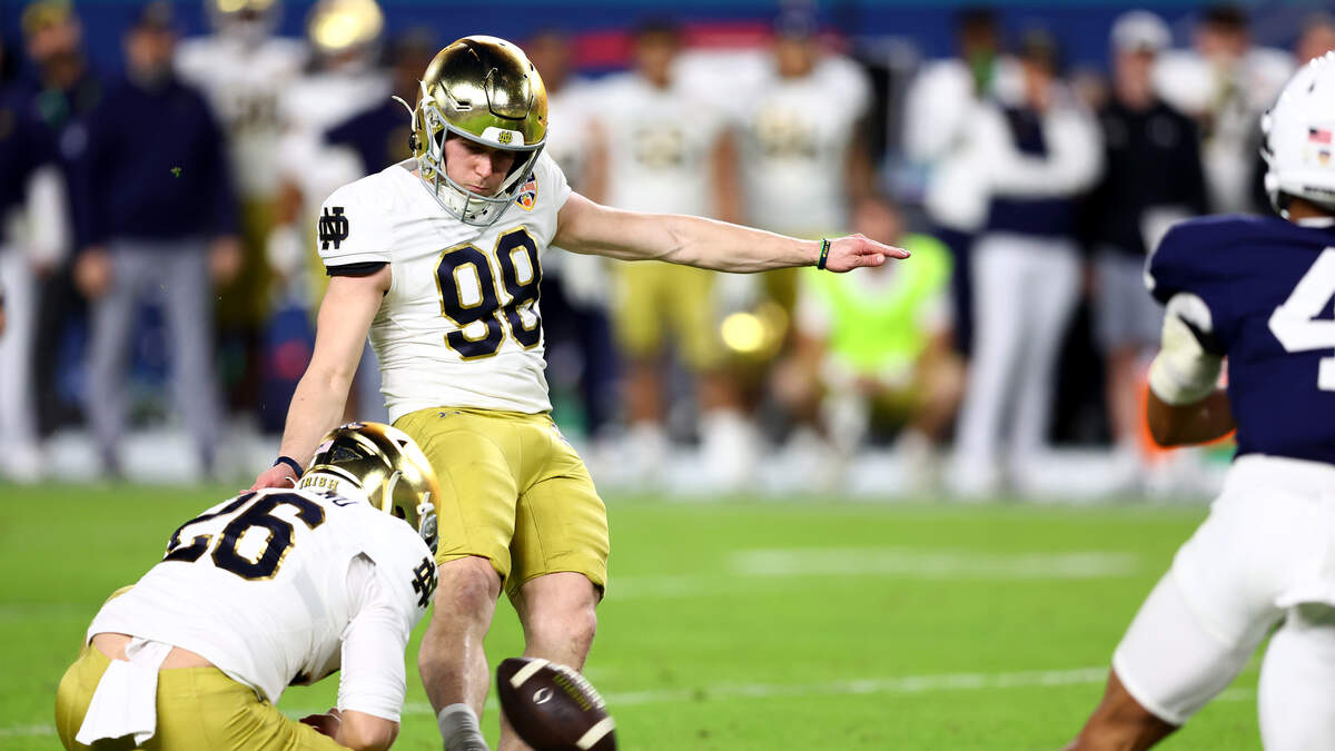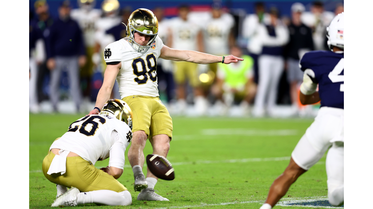 The Notre Dame Fighting Irish have punched their ticket to the College Football Playoff National Championship. Notre Dame defeated Penn State 27-24 in the CFP Semifinal at the Orange Bowl. Riley Leonard completed 15-of-23 pass attempts for 223 yards, one touchdown and two interceptions. He also rushed for 35 yards and a score. Jeremiyah Love also rushed for a TD, while Jaden Greathouse had seven catches for 105 yards and a score. The Irish will be looking to claim their 12th national title in school history and first since 1988 when they face the winner of the Cotton Bowl matchup between Ohio State and Texas on January 20th. Penn State QB Drew Allar went 12-of-23 for 140 yards and a pick in the losing effort. Nicholas Singleton rushed for 84 yards and three touchdowns as the Nittany Lions finished the year at 13-and-3.