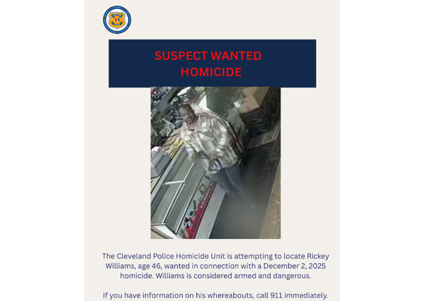 Investigators have identified the suspect as 46-year-old Rickey Williams. Williams is alleged to have discarded the victim from his vehicle on Superior Avenue. Responding officers located the victim in the roadway with multiple gunshot wounds. The victim was transported to UH Hospital, where he was later pronounced deceased.