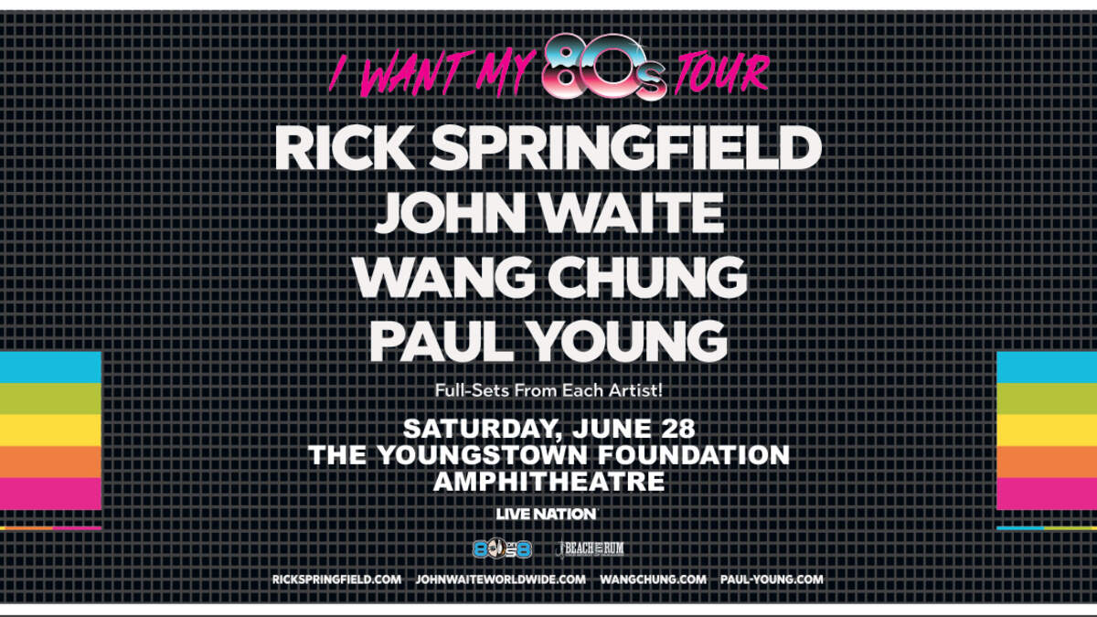 Rick Springfield brings his "I Want My 80s Tour" to Youngstown Foundation Amphitheatre on Saturday, June 28 at 7:30 PM with special guests: John Waite, Wang Chung, Paul Young! Hear some of your favorites like: "Jessie's Girl", " Don't Talk to Strangers", "I've Done Everything for You" and more! For complete show details and to purchase your tickets, click HERE starting Friday, February 14 at 10:00 AM!