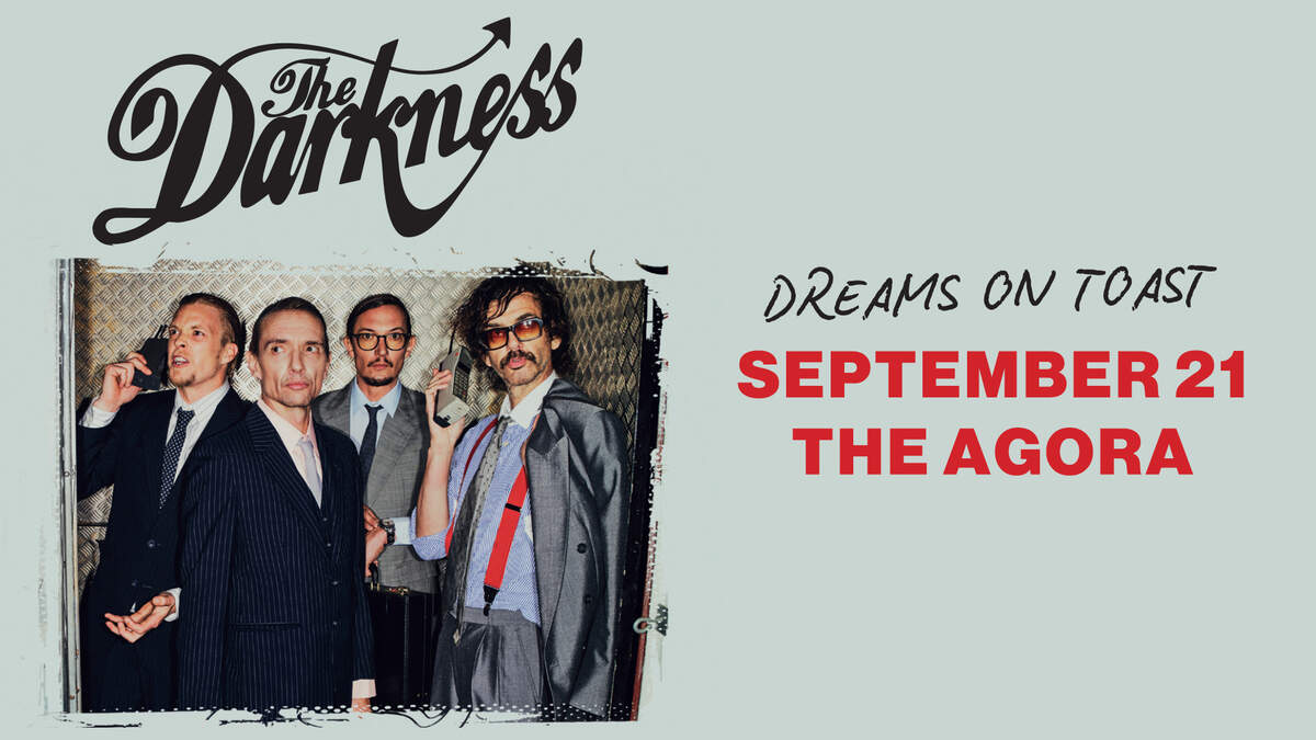 The Darkness brings their Dream on Toast Tour to The Agora on Sunday, September 21 at 8:00 PM! Hear some of your favorite songs like: " I Believe in a Thing Called Love", "Love Is Only a Feeling", "I Hate Myself", "Rock and Roll Party Cowboy" and many others! For complete show details and to purchase your tickets, click HERE!