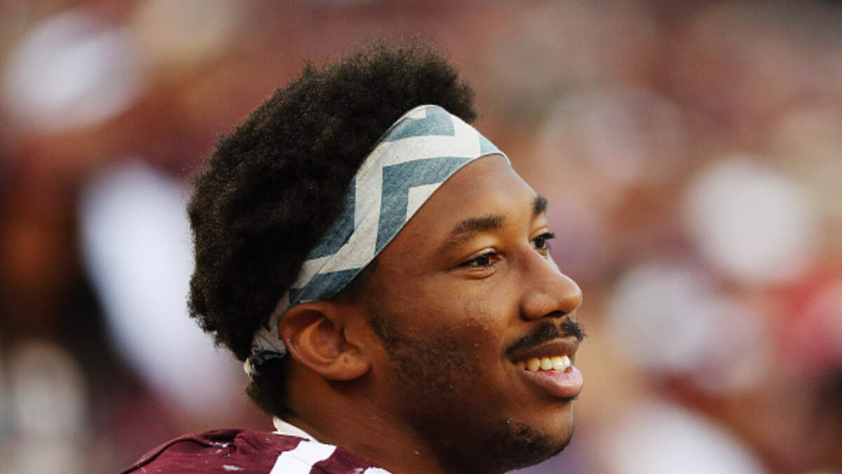 Top pick Myles Garrett went down in the final minutes of Wednesday's practice with what is believed to be an injury to his left foot.