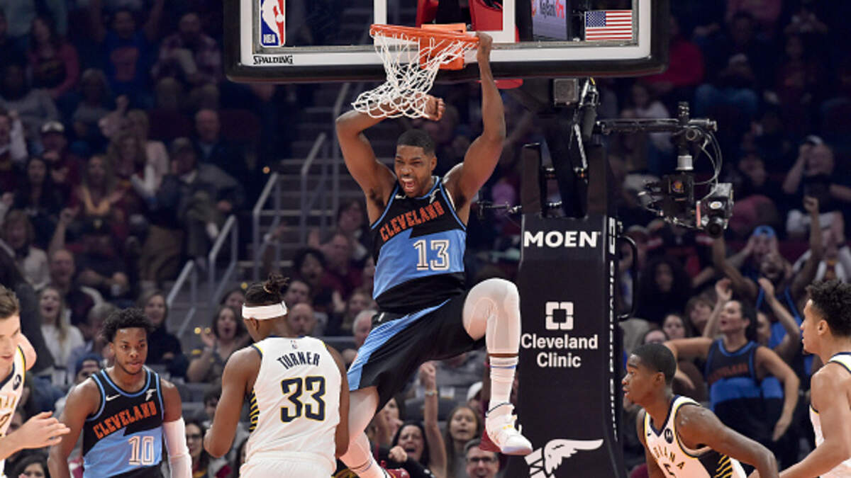 CLEVELAND, OHIO - OCTOBER 26: Tristan Thompson #13 of the Cleveland Cavaliers celebrates after a dunk against the Indiana Pacers during the first half at Rocket Mortgage Fieldhouse on October 26, 2019 in Cleveland, Ohio. NOTE TO USER: User expressly acknowledges and agrees that, by downloading and/or using this photograph, user is consenting to the terms and conditions of the Getty Images License Agreement. (Photo by Jason Miller/Getty Images)