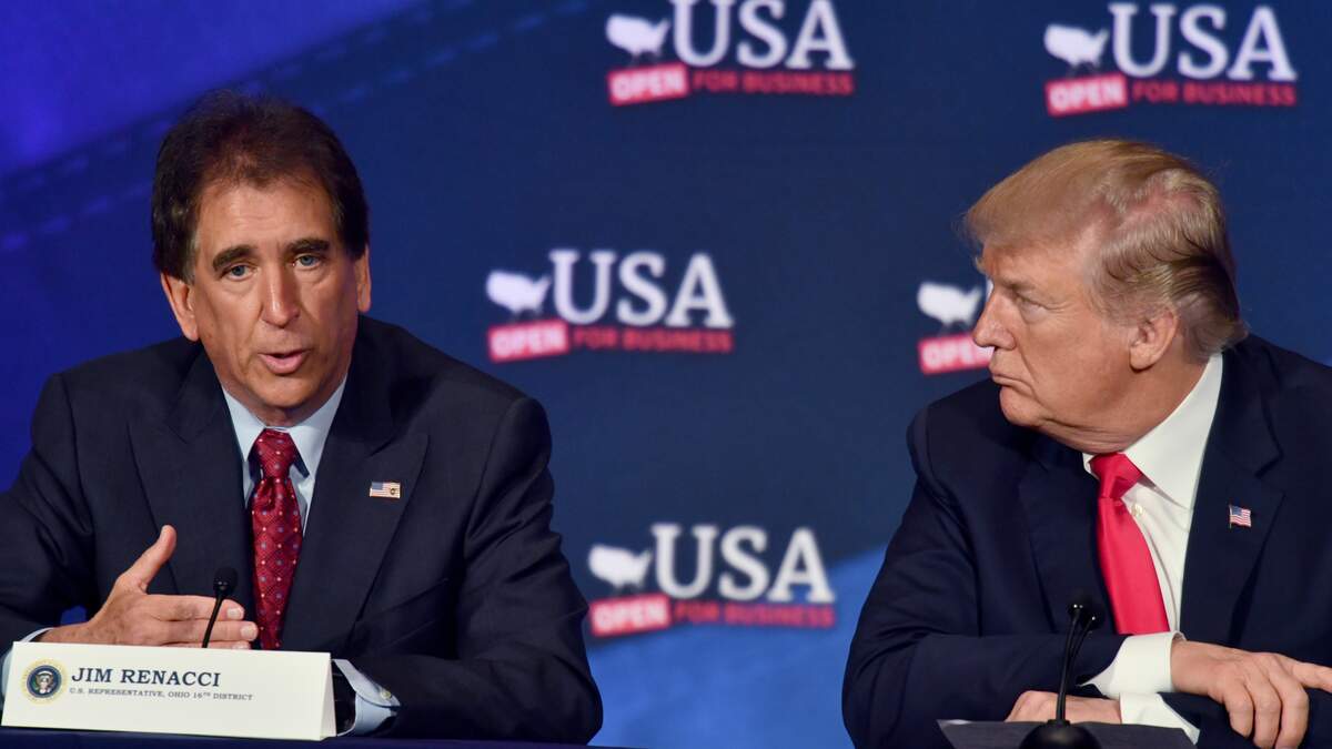 US President Donald Trump listens to US Representative Jim Renacci (L) during a roundtable discussion on the new tax law at the Cleveland Public Auditorium and Conference Center on May 5, 2018, in Cleveland, Ohio. Photo: (Photo by Nicholas Kamm / AFP) (Photo by NICHOLAS KAMM/AFP via Getty Images)