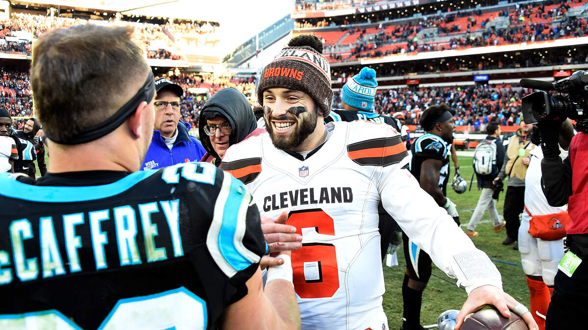 Good Luck Baker - You will have to beat out Sam Darnold to play that 1st game vs Browns - Yes, you will play, because QB's get hurt in this league and you will see the field for the Panthers - Best of Luck to you Baker!!!
