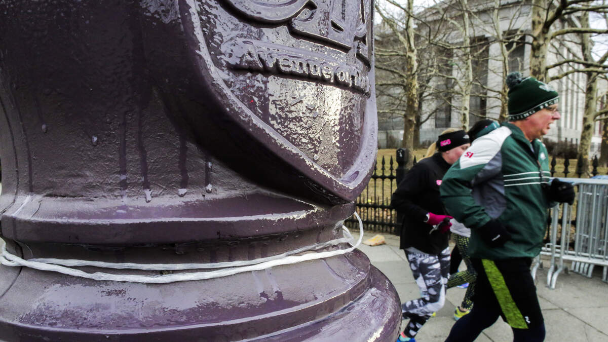 In anticipation of a Phillies World Series clinch, city workers spent most of the day on Sunday applying grease to the city's light poles to prevent enthusiastic fans from climbing them while celebrating. But they managed to climb them anyway.