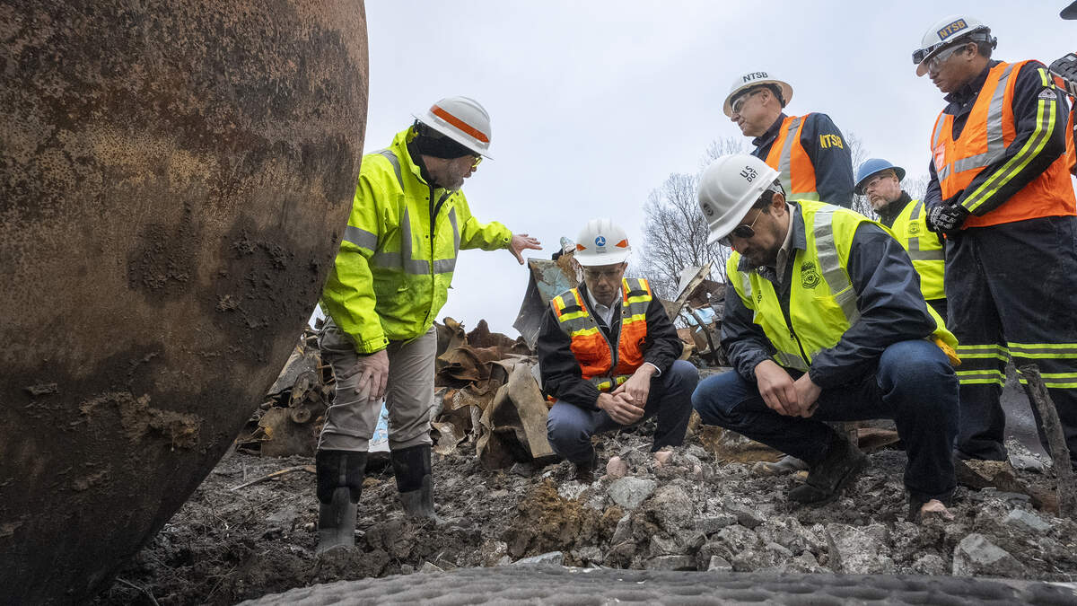 EAST PALESTINE, OH - FEBRUARY 23: U.S. Secretary of Transportation Pete Buttigieg (2L) visits with Department of Transportation Investigators at the site of the derailment on February 23 2023 in East Palestine, Ohio. Below where he stands is a pile of ash. On February 3rd, a Norfolk Southern Railways train carrying toxic chemicals derailed causing an environmental disaster. Thousands of residents were ordered to evacuate after the area was placed under a state of emergency and temporary evacuation orders (Photo by Brooke LaValley-Pool/Getty Images)Photo: (Photo by Brooke LaValley-Pool/Getty Images)