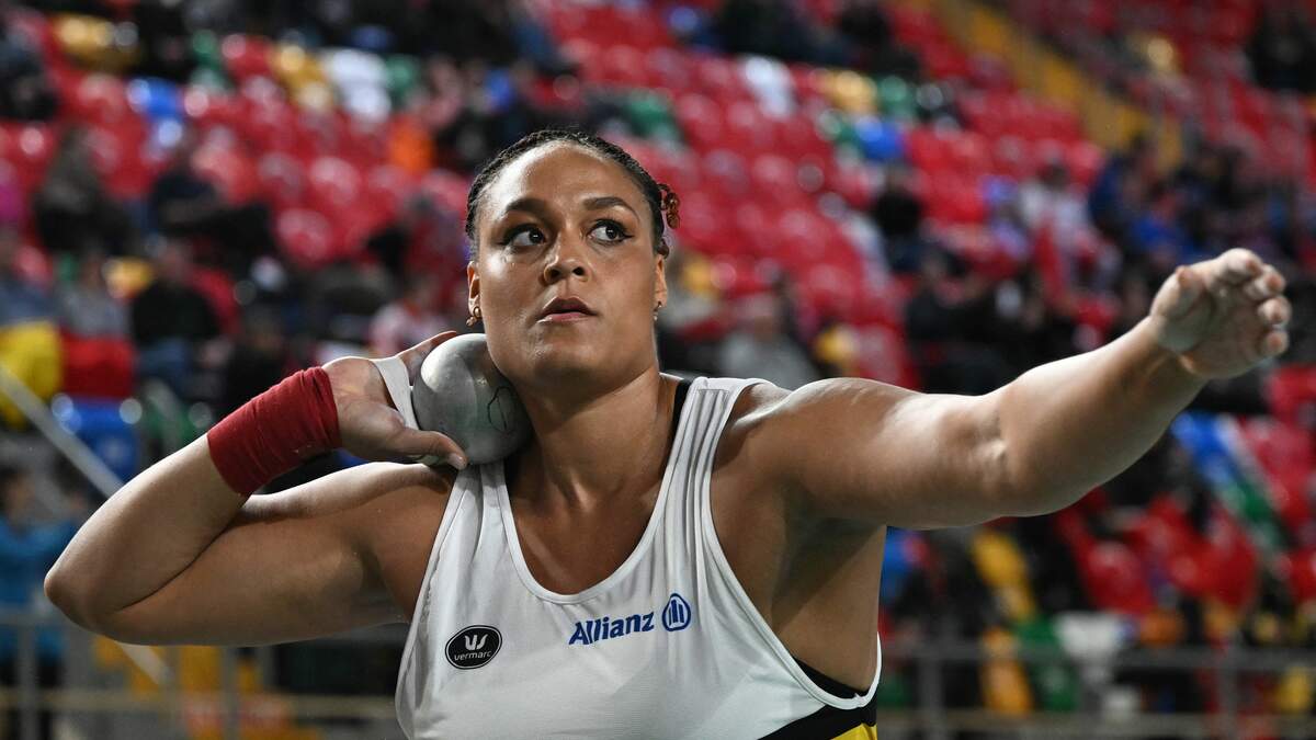 "Take One For The Team" - A True Team Player!! Belgian shot putter Jolien Moumkwo stands in for her team-mates and competes in the 100m hurdles at the European Games.
