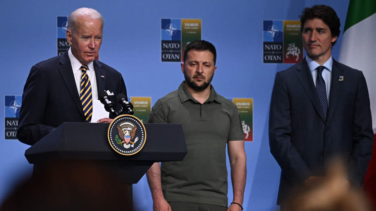 “Vladimir and I … I shouldn’t be so familiar,” Biden said during a press conference in the Lithuanian capital, appearing to catch himself seconds after the blunder. “Mr. Zelensky and I talked about the kind of guarantees we could make in the meantime when I was in Ukraine and when we met in other places.,” he corrected himself as he stood feet from the Ukrainian leader.