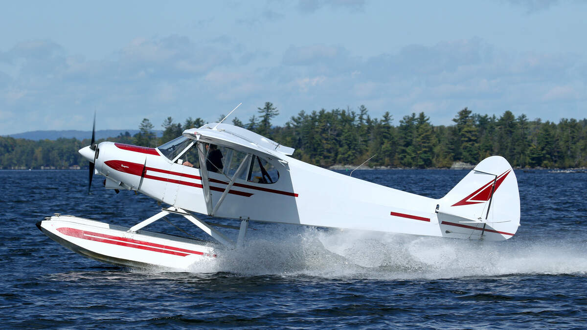 The Piper PA-18 plane made a water landing near Hampton Beach on Saturday.