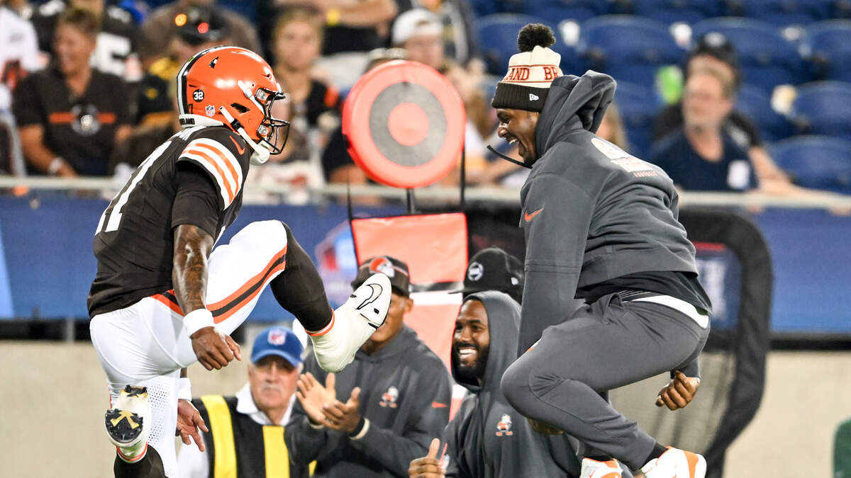 Cleveland Browns stormed back from a nine-point halftime deficit to defeat the New York Jets 21-16 in the 2023 Hall of Fame Game. The Browns went ahead for good when Dorian Thompson-Robinson connected with Austin Watkins Jr. on a 22-yard touchdown pass with nine-and-a-half minutes left to play. The rookie signal caller finished 8-of-11 for 82 yards and a TD in the win. Demetric Felton Jr. and John Kelly Jr. also found the end zone for Cleveland. The rookie signal caller finished 8-of-11 for 82 yards and a TD in the win. Demetric Felton Jr. and John Kelly Jr. also found the end zone for Cleveland. Zach Wilson started at QB for the Jets and completed 3-of-5 attempts for 65 yards in the loss. Jets rookie tailback Israel Abanikanda found pay dirt on a 10-yard rush in the first half. Greg Zuerlein was 3-for-3 on his field goal attempts for New York. Cleveland is now 1-and-0 on the preseason and will host the Commanders next Friday.