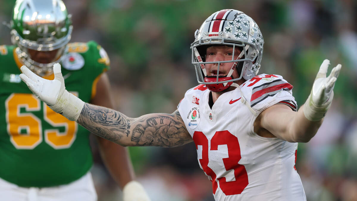 Ohio State defeated Oregon 41-21 in the College Football Playoff Quarterfinal at the Rose Bowl.