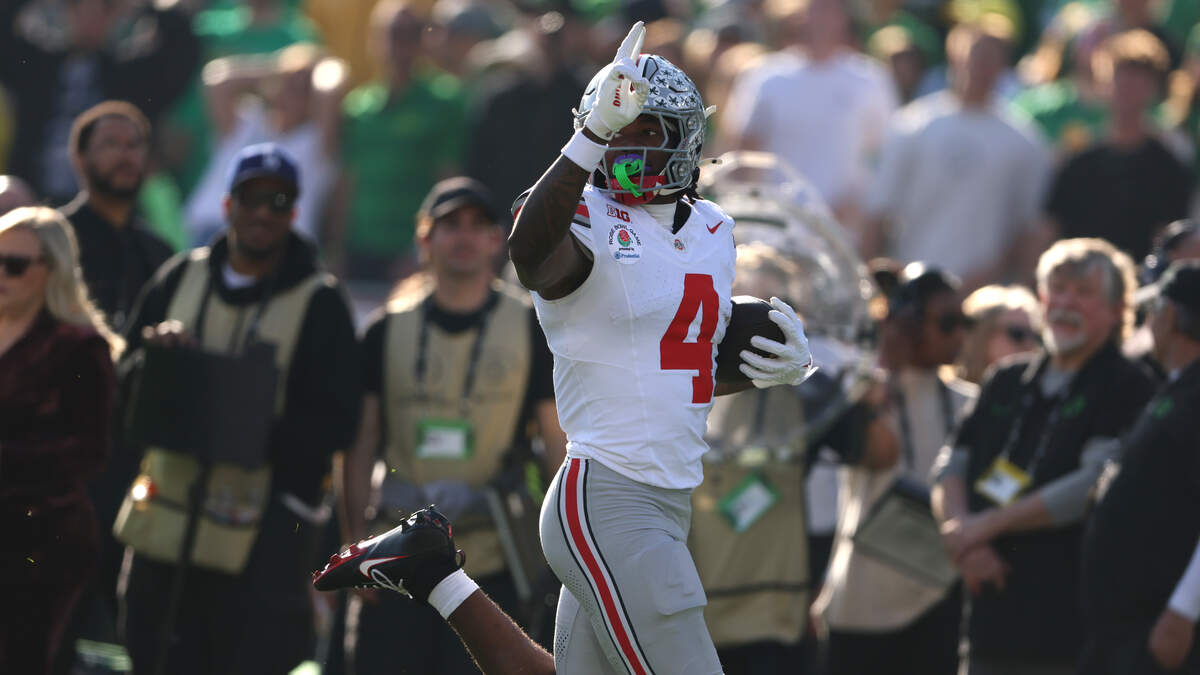 The Ohio State Buckeyes are advancing to the College Football Playoff semifinals. Ohio State defeated Oregon 41-21 in the College Football Playoff Quarterfinal at the Rose Bowl. Will Howard completed 17-of-26 pass attempts for 319 yards and three touchdowns. Jeremiah Smith came up big with seven receptions for 187 yards and two TDs, while TreVeyon Henderson rushed for 94 yards and two scores. The Buckeyes are now set to face-off against the Texas Longhorns in the Cotton Bowl Classic for a spot in the National Championship Game. Oregon QB Dillon Gabriel went 29-of-41 for 299 yards and two touchdowns in the losing effort. Traeshon Holden had seven catches for 11 yards and two scores as the Ducks finished the season at 13-and-1.