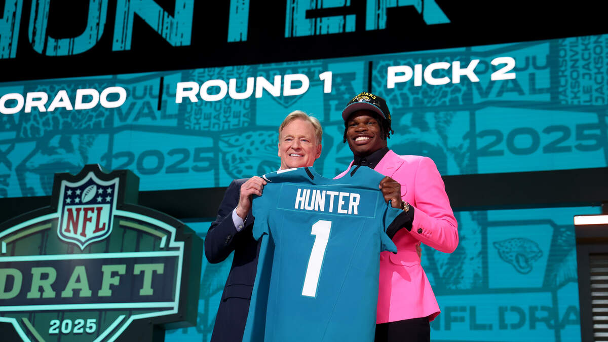 The Jacksonville Jaguars select Colorado Buffaloes cornerback and wide receiver Travis Hunter in Round 1 of the 2025 NFL Draft with the No. 2 overall pick (via a trade with the Cleveland Browns).