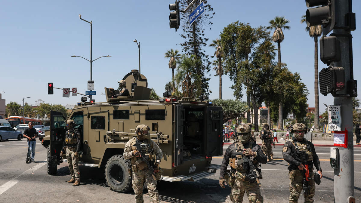 Federal agents in an armored vehicle were seen in the Westlake area of Los Angeles and were confronted by a crowd.