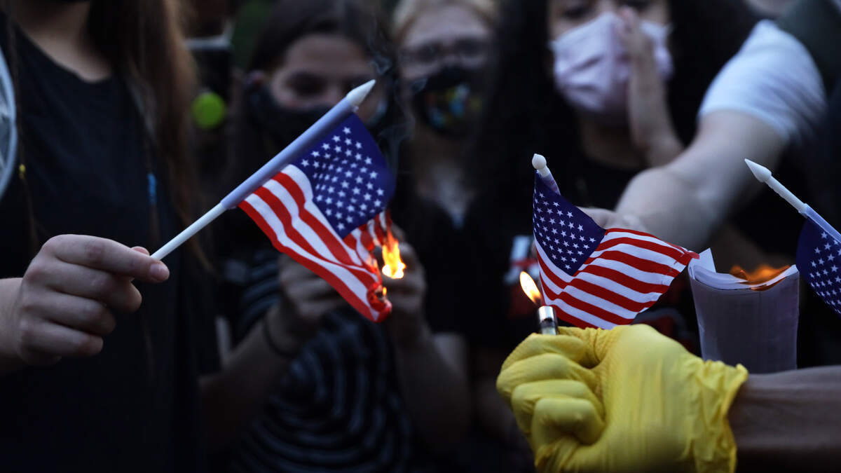 A person was arrested near the White House on Tuesday after setting fire to an American flag, just hours after President Donald Trump signed an executive order seeking to punish people who burn the flag.The man said he was 20-year combat veteran and identified himself as Jay Carey. He said he was protesting to defend the right to burn the flag under the First Amendment.