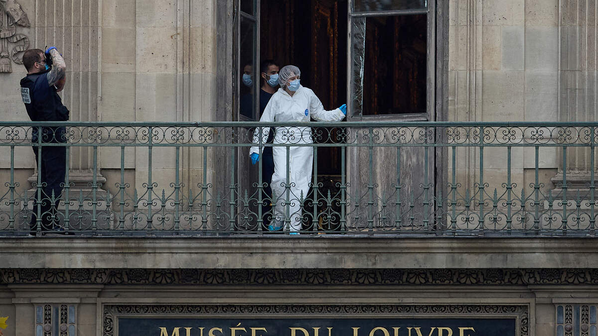 The thieves targeted the gilded Apollon Gallery, using a basket lift to enter the museum through a window, break two display cases, and flee on scooters with valuables including necklaces, earrings, a brooch, and two crowns.