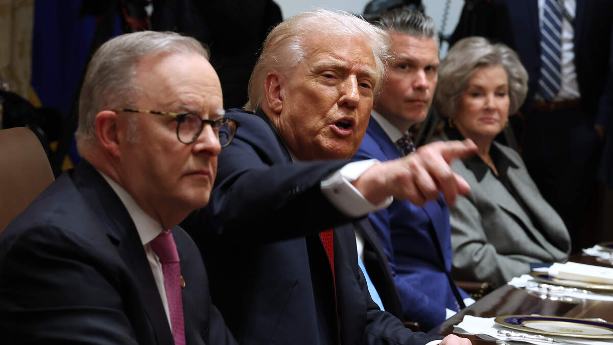 President Trump was hosting Australian Prime Minister Albanese when a mirror was bumped into, causing Trump to interrupt his remarks and express concern over the 400-year-old mirror.