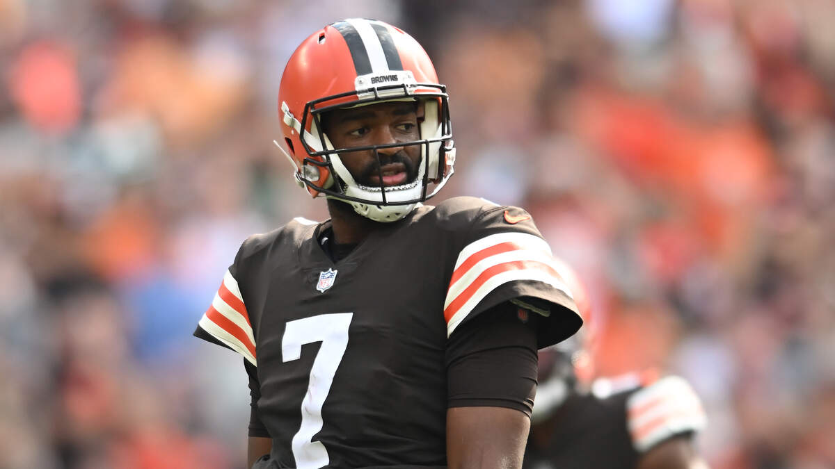 CLEVELAND, OHIO - SEPTEMBER 18: Jacoby Brissett #7 of the Cleveland Browns reacts after a play against the New York Jets during the second half at FirstEnergy Stadium on September 18, 2022 in Cleveland, Ohio.Photo: Nick Cammett/Getty Images