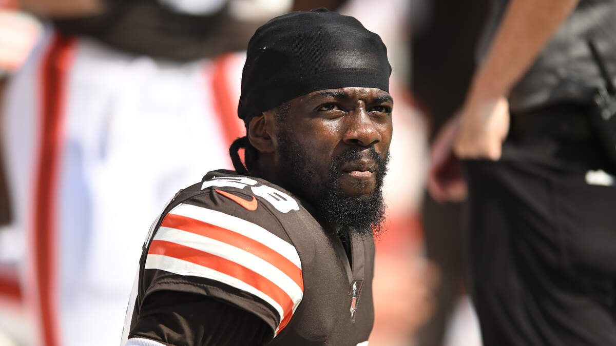 CLEVELAND, OHIO - SEPTEMBER 18: Jeremiah Owusu-Koramoah #28 of the Cleveland Browns looks on before the game against the New York Jets at FirstEnergy Stadium on September 18, 2022 in Cleveland, Ohio.Photo: Nick Cammett/Getty Images