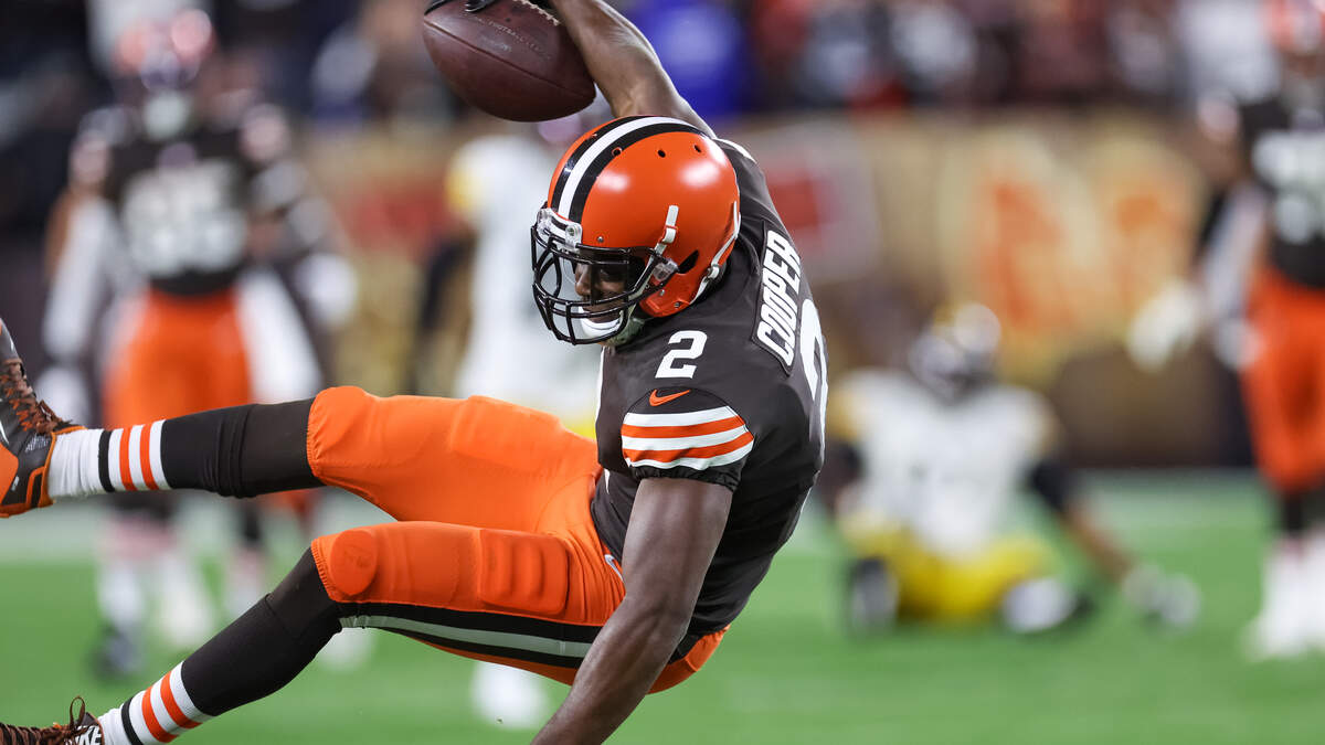 CLEVELAND, OHIO - SEPTEMBER 22: Amari Cooper #2 of the Cleveland Browns makes a catch during the fourth quarter against the Pittsburgh Steelers at FirstEnergy Stadium on September 22, 2022 in Cleveland, Ohio.Photo: Gregory Shamus/Getty Image