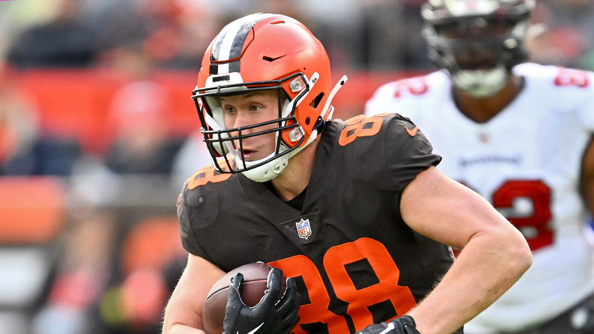 CLEVELAND, OHIO - NOVEMBER 27: Harrison Bryant #88 of the Cleveland Browns runs with the ball during the first half against the Tampa Bay Buccaneers at FirstEnergy Stadium on November 27, 2022 in Cleveland, Ohio.Photo: Jason Miller/Getty Images