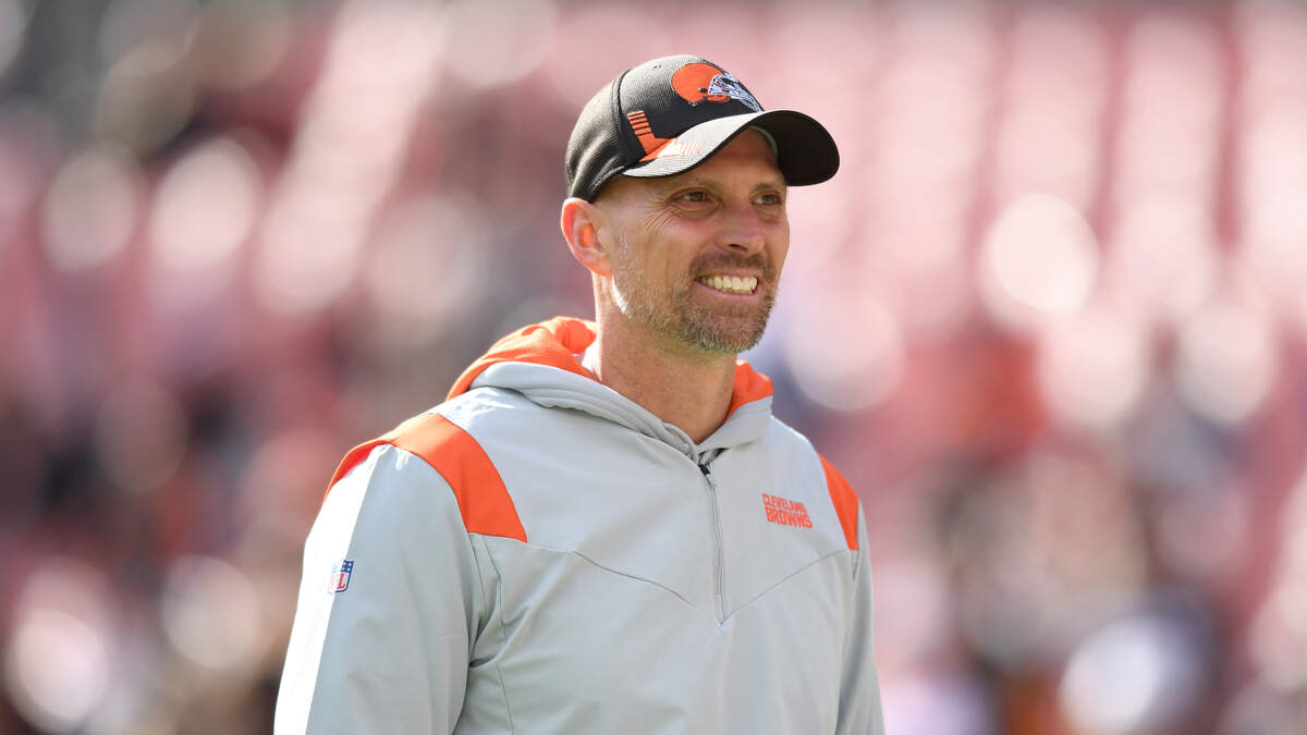 CLEVELAND, OHIO - OCTOBER 31: Cleveland Browns wide receivers coach Chad O'Shea smiles during warmups before a game against the Pittsburgh Steelers at FirstEnergy Stadium on October 31, 2021 in Cleveland, Ohio.Photo: Nick Cammett/Getty Images